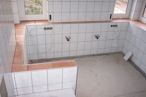 Erhöhen der Ablagen auf das Fliesenraster der WandfliesenEinteilen des Wandbelages entlang der