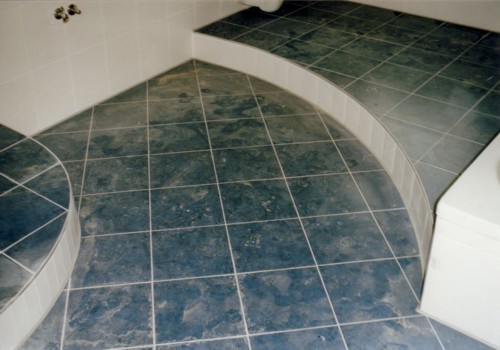 nicht als notwendig erkannt werden. bzw. sich harmonisch in das Gesamtbild einfügen. Der diagonale Bodenbelag läuft nun flankiert von den Podesten auf das Waschbecken zu.