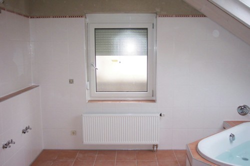 der WandVerwendung eines wasserabweisenden flexiblen FugenmörtelsVerfugen der Bodenfliesen ( bzw. Ablagen ) in hellgrau