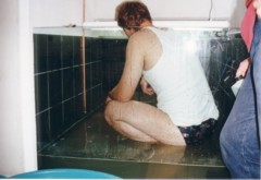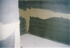 nach der Trocknung 2maliges abdichten der Wände und des Bodens mit Dichtschlämme unter Verwendung von Dichtbändern und --ecken.