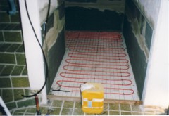 6. Abspachteln der elektrischen Heizung mit Beton und Spachtelmasse,