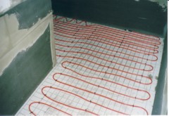 5. Befestigen der Fußbodenheizung an der Baustahlmatte, anschliessen an
