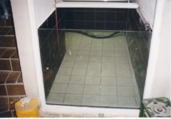 Temperaturfühler. Einsetzen und Eindichten der 2 cm starken Glasscheibe