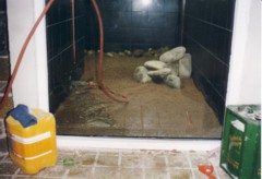 1. Abmauern von Öffnungen und säubern der Wände von Farbe.